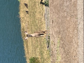 | Another beautiful day at the lake. Sunny and a chilly 70F. By myself again for another Monday session except for the fawn who is very curious about what I'm eating for breakfast. The weekenders are gone and the weekday locals are out in force. Determined to get some foil TOW (time on the water), I rigged the foil board and flew for about half hour doing touch and go, but then the wind rose to 18 mph, on its way to 20 for the rest of the day. Back to my windsurfing gear. I sailed until about 4:00 pm, then packed up all the gear for the trip home. I left a little early to pick up a 6.5m Ezzy sail and a 430 Ezzy mast on my way home. |