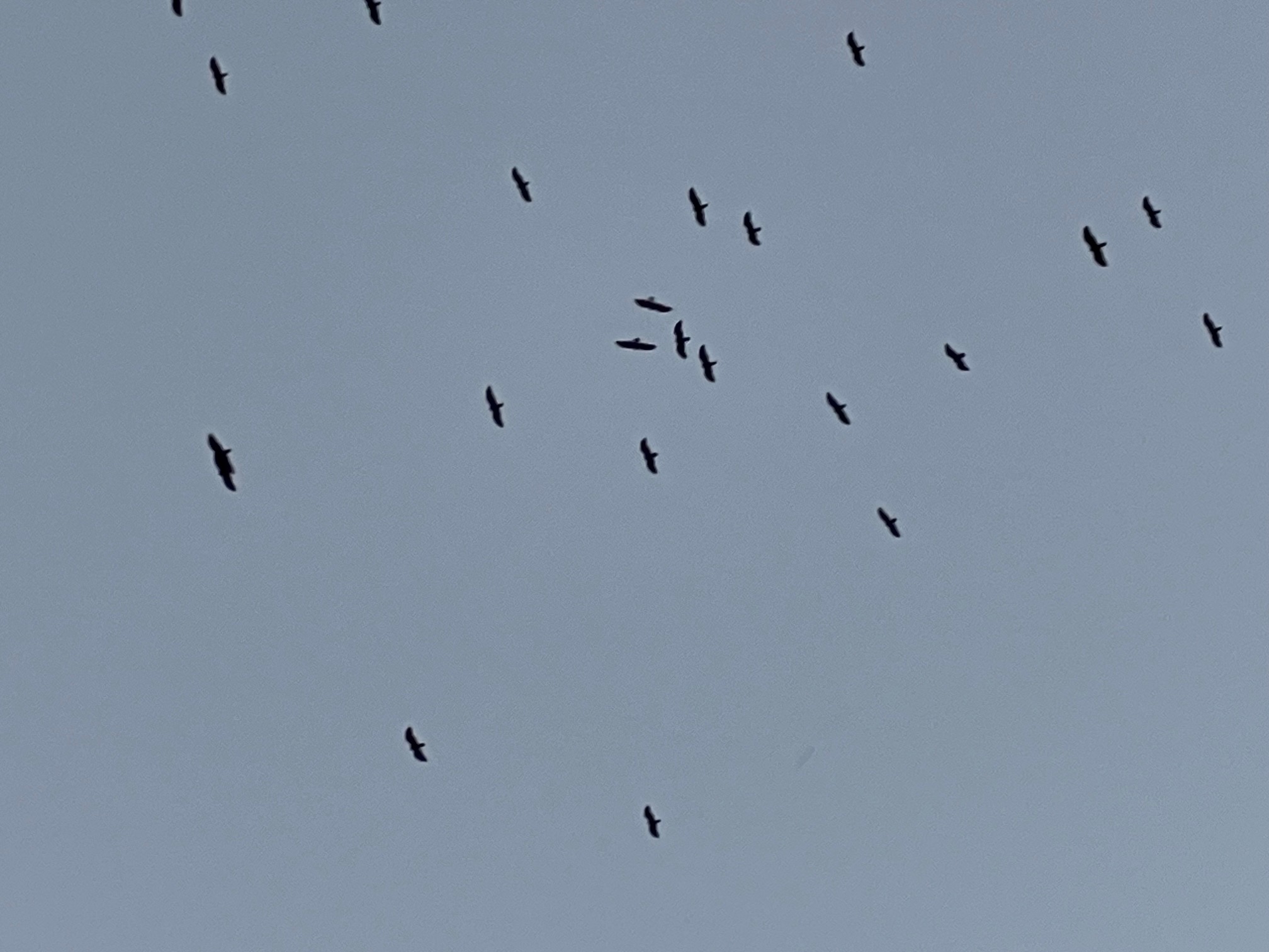 I am now parked on the road which runs in front of the lake. When I drove in this morning there must have been 100 turkey vultures circling above road. There are always buzzards her, but I've never seen so many at one time.